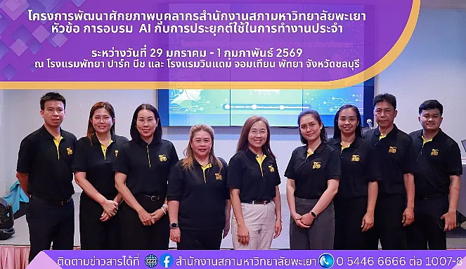 สำนักงานสภามหาวิทยาลัยพะเยา ร่วมกับกองแผนงาน จัดโครงการพัฒนาศักยภาพบุคลากร โดยการอบรมหัวข้อ “AI กับการประยุกต์ใช้ในการทำงานประจำ”
