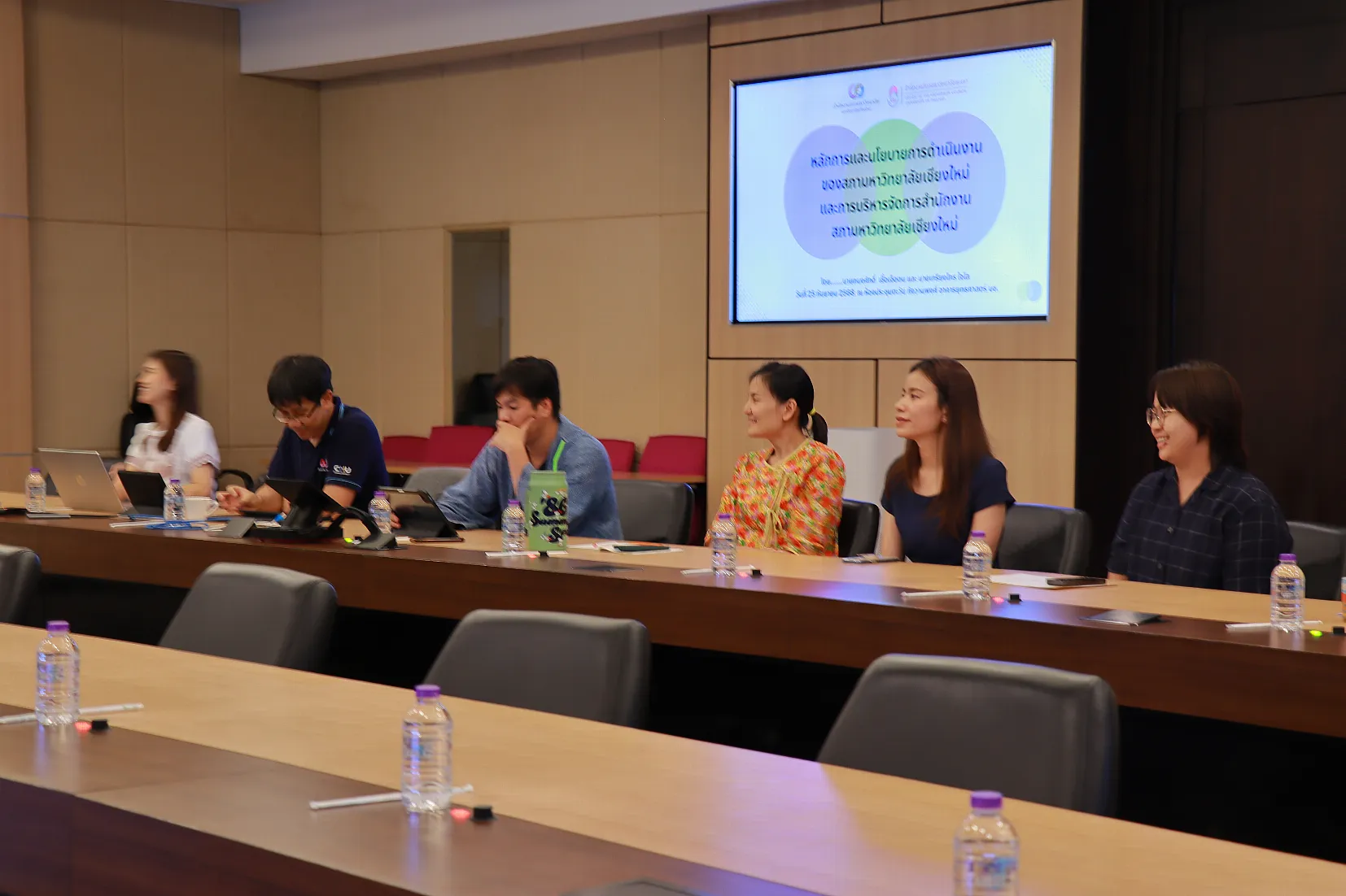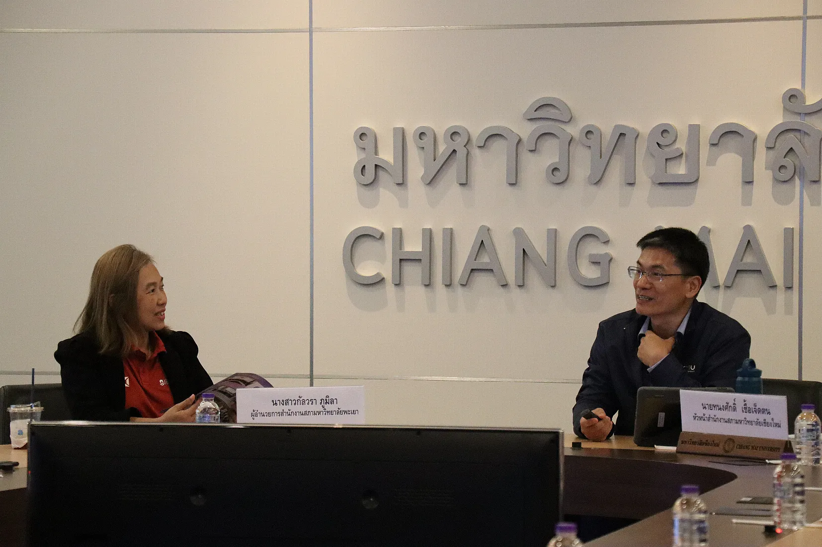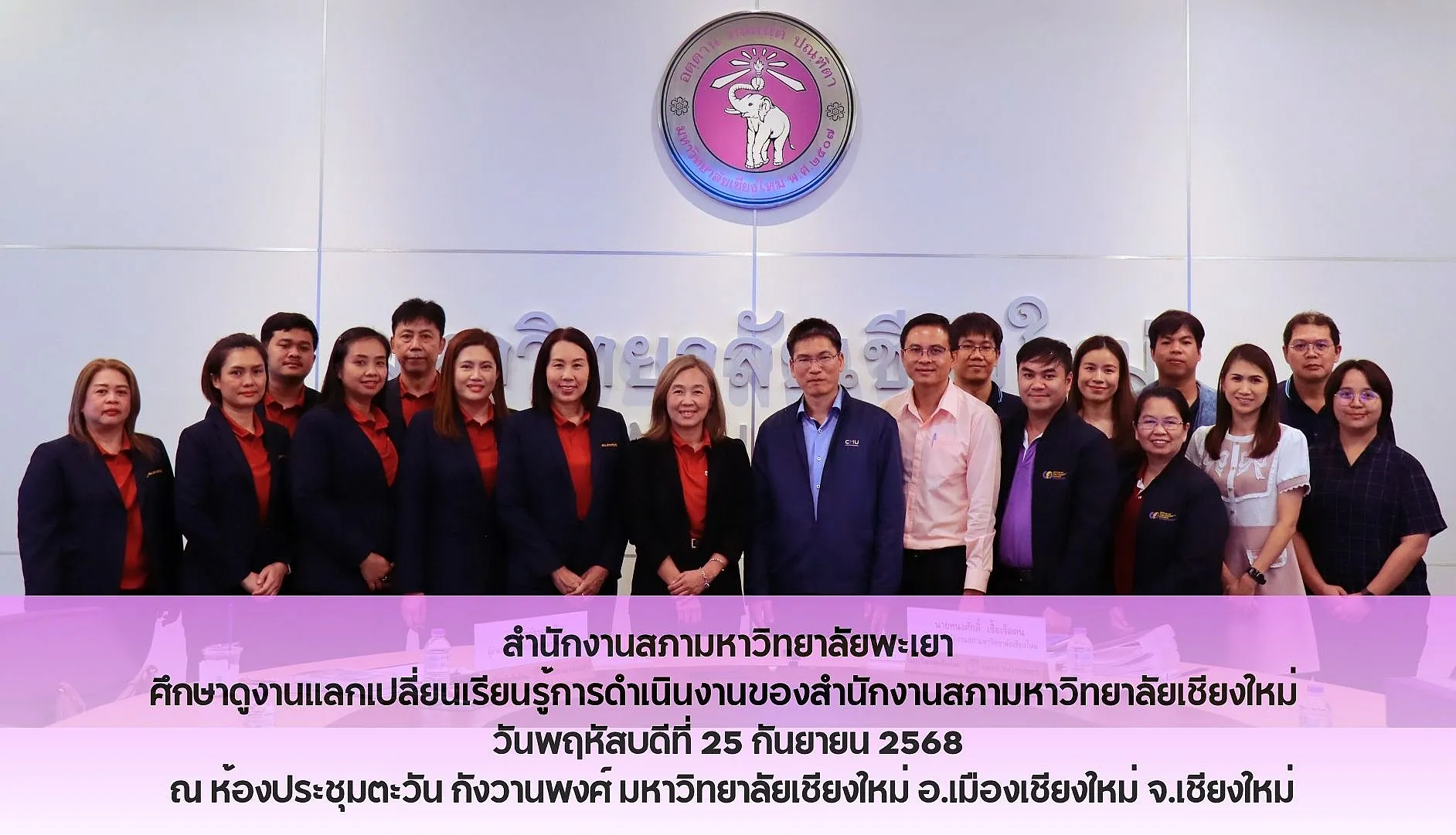 เมื่อวันพฤหัสบดีที่ 25 กันยายน 2568 นางสาวกัลวรา ภูมิลา ผู้อำนวยการสำนักงานสภามหาวิทยาลัยพะเยา นำบุคลากรสำนักงานสภามหาวิทยาลัยพะเยา เข้าร่วมศึกษาดูงานแลกเปลี่ยนเรียนรู้การดำเนินงานของสำนักงานสภามหาวิทยาลัย มหาวิทยาลัยเชียงใหม่ ณ ห้องประชุมตะวัน กังวานพงศ์ มหาวิทยาลัยเชียงใหม่ โดยได้รับเกียรติจาก นายทนงศักดิ์ เชื้อเจ็ดตน หัวหน้าสำนักงานมหาวิทยาลัยเชียงใหม่ พร้อมด้วยบุคลากร ให้การต้อนรับ