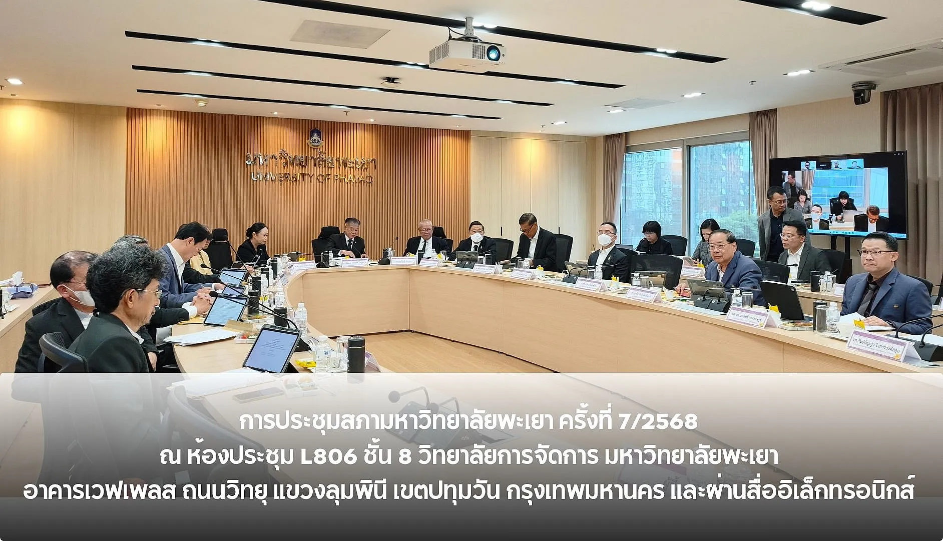 วันเสาร์ที่ 25 ตุลาคม 2568 ศาสตราจารย์พิเศษอรรถพล ใหญ่สว่าง นายกสภามหาวิทยาลัยพะเยา เป็นประธานการประชุมสภามหาวิทยาลัยพะเยา ครั้งที่ 7/2568 ณ ห้องประชุม L806 ชั้น 8 วิทยาลัยการจัดการ มหาวิทยาลัยพะเยา อาคารเวฟเพลส ถนนวิทยุ แขวงลุมพินี เขตปทุมวัน กรุงเทพมหานคร และผ่านสื่ออิเล็กทรอนิกส์