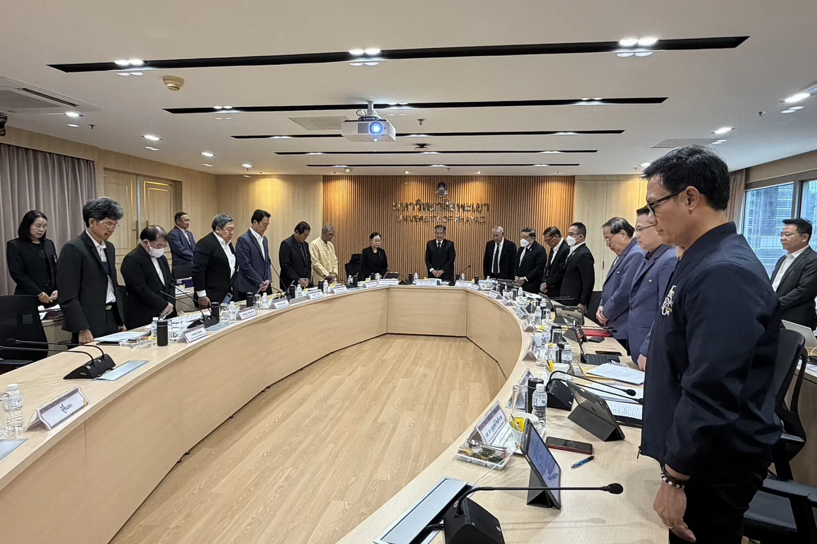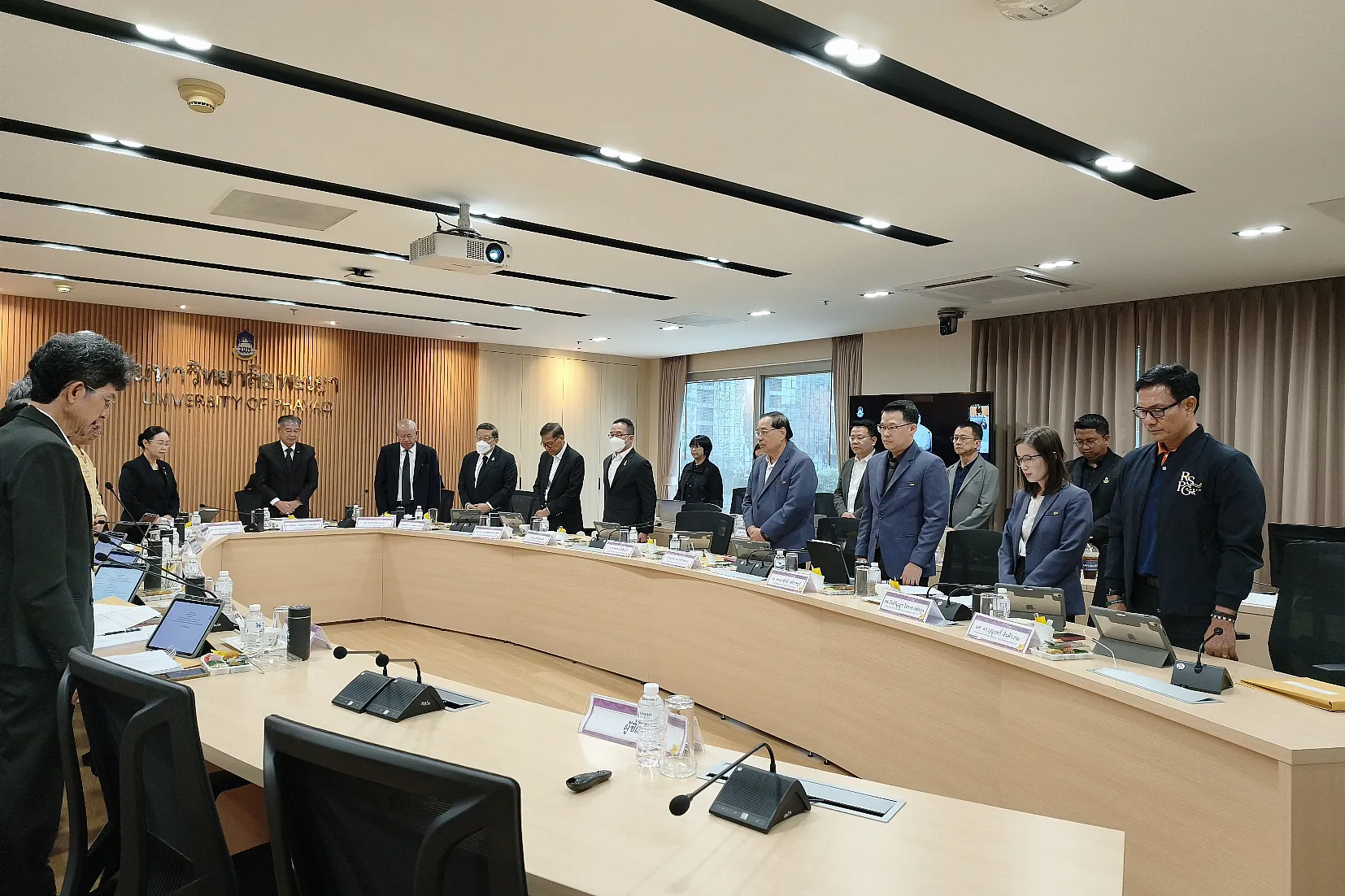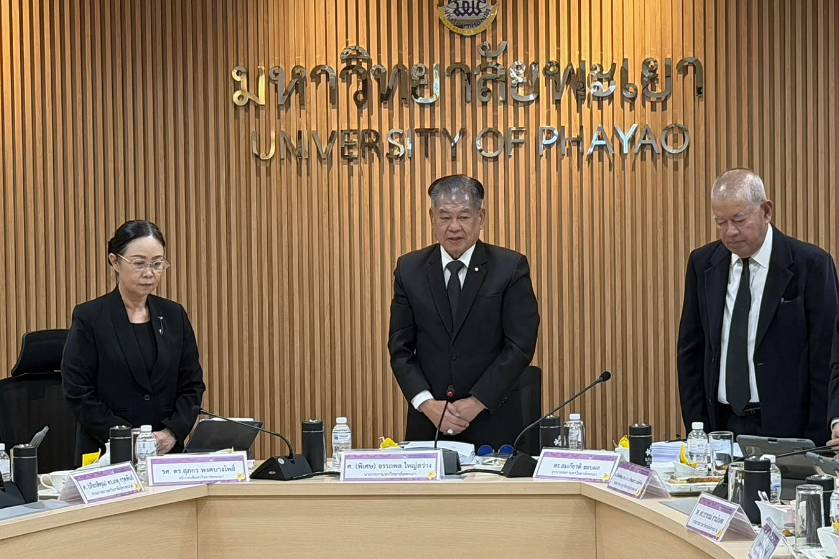 ก่อนเริ่มการประชุม นายกสภามหาวิทยาลัยพะเยาได้ขอให้ที่ประชุมยืนสงบนิ่งเพื่อไว้อาลัยแด่ สมเด็จพระนางเจ้าสิริกิติ์ พระบรมราชินีนาถ พระบรมราชชนนีพันปีหลวง และขอให้ทุกหน่วยงานในมหาวิทยาลัยพะเยา ลดธงครึ่งเสา และแต่งกายไว้ทุกข์ตามกำหนดการที่สำนักนายกรัฐมนตรีกำหนดต่อไป