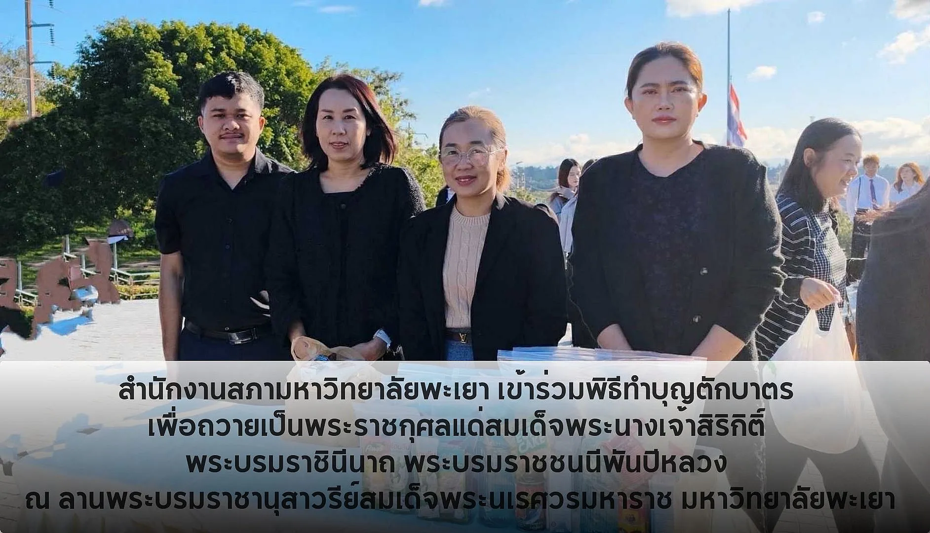 วันศุกร์ที่ 21 พฤศจิกายน 2568 เวลา 07.00 น. นางสาวกัลวรา ภูมิลา ผู้อำนวยการสำนักงานสภามหาวิทยาลัยพะเยา พร้อมด้วยบุคลากรสำนักงานสภามหาวิทยาลัยพะเยา เข้าร่วมพิธีทำบุญตักบาตร เพื่อถวายเป็นพระราชกุศลแด่ สมเด็จพระนางเจ้าสิริกิติ์ พระบรมราชินีนาถ พระบรมราชชนนีพันปีหลวง ณ ลานพระบรมราชานุสาวรีย์สมเด็จพระนเรศวรมหาราช มหาวิทยาลัยพะเยา จัดโดยศูนย์ศิลปะและวัฒนธรรมล้านนา ร่วมกับ คณะรัฐศาสตร์และสังคมศาสตร์ คณะพยาบาลศาสตร์ และคณะแพทยศาสตร์ โดยมีผู้บริหาร บุคลากร นิสิต และประชาชนทั่วไป เข้าร่วมเป็นจำนวนมาก