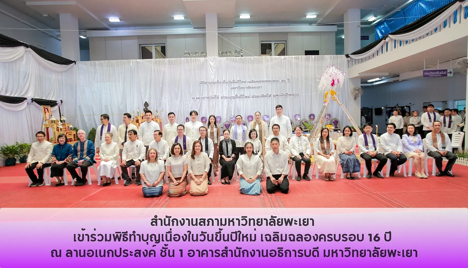 เมื่อวันศุกร์ที่ 9 มกราคม พ.ศ. 2569 สำนักงานสภามหาวิทยาลัยพะเยาได้เข้าร่วมพิธีทำบุญเนื่องในวันขึ้นปีใหม่ ประจำปี 2569 เฉลิมฉลองครบรอบ 16 ปี มหาวิทยาลัยพะเยา “ม.พะเยาร่วมใจ๋ ฮ่วมบุญขึ้นปี๋ใหม่ น้อมเทิดไท้ พระพันปีหลวง” จัดขึ้นโดยกองกลาง ณ ลานอเนกประสงค์ ชั้น 1 อาคารสำนักงานอธิการบดี มหาวิทยาลัยพะเยา