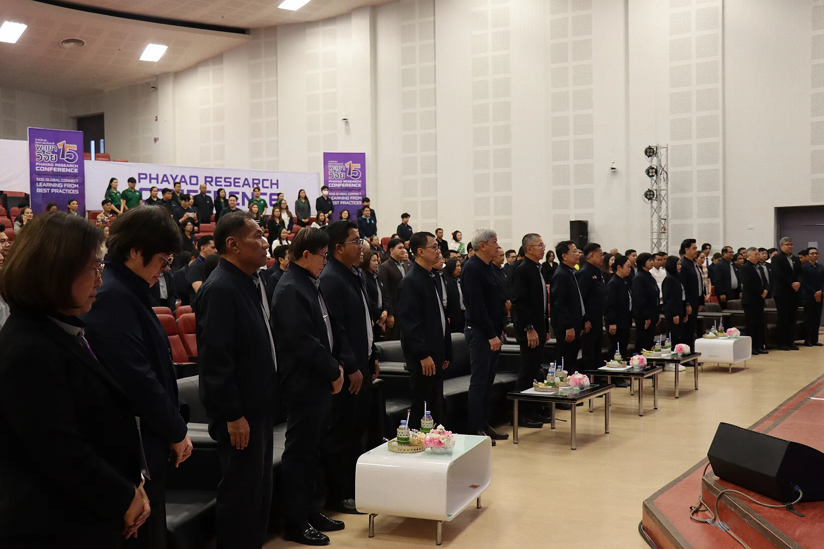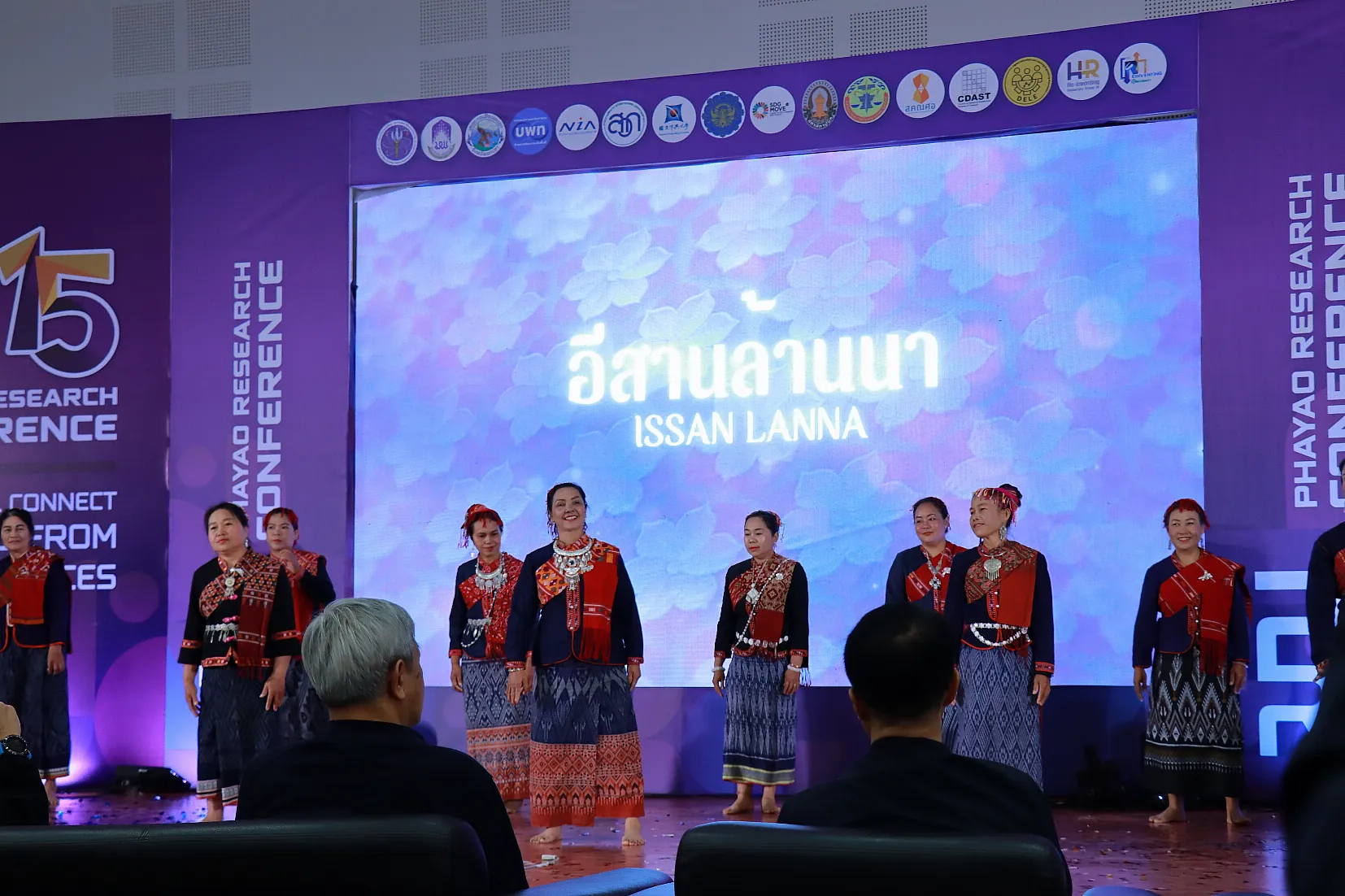 ก่อนเริ่มงานนายกสภามหาวิทยาลัย พร้อมด้วยอธิการบดี ผู้บริหาร คณาจารย์ บุคลากร นิสิต และประชาชน ร่วมกันยืนสงบนิ่ง เพื่อแสดงความอาลัยและน้อมสำนึกในพระมหากรุณาธิคุณแด่สมเด็จพระนางเจ้าสิริกิติ์ พระบรมราชินีนาถ พระบรมราชชนนีพันปีหลวง จากนั้น รองศาสตราจารย์ ดร.สุภกร พงศบางโพธิ์ อธิการบดีมหาวิทยาลัยพะเยา กล่าวรายงานการจัดการประชุมวิชาการฯ ก่อนที่นายกสภามหาวิทยาลัยจะให้เกียรติเป็นประธานกล่าวเปิดการประชุมฯ อย่างเป็นทางการและรับชมการแสดงชุด “อีสานล้านนา” จากชุมชนอีสานบ้านจำไก่