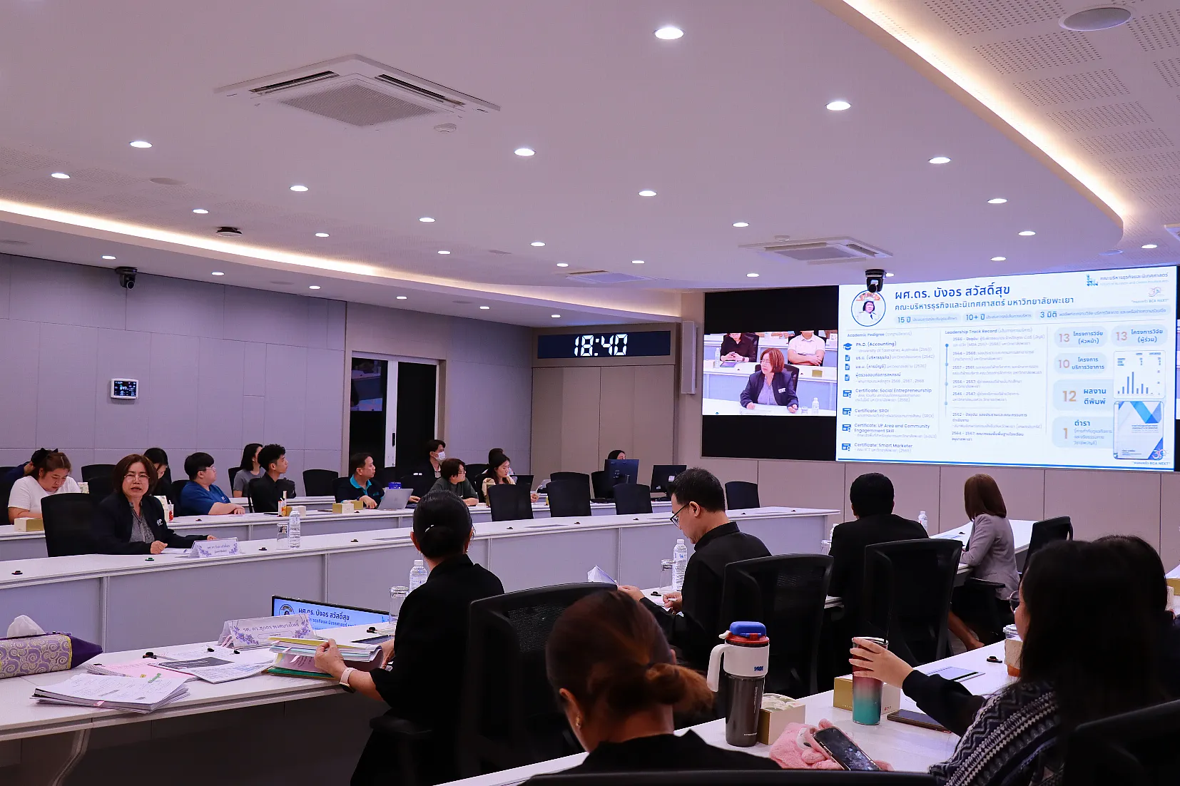 เมื่อวันศุกร์ที่ 10 เมษายน 2569 เวลา 13.30 น. สำนักงานสภามหาวิทยาลัยพะเยา จัดประชุมการแสดงวิสัยทัศน์และสัมภาษณ์ผู้ตอบรับการทาบทามเพื่อเข้ารับการสรรหาเป็นผู้สมควรดำรงตำแหน่งคณบดีคณะบริหารธุรกิจและนิเทศศาสตร์ ณ ห้องประชุมบวร รัตนประสิทธิ์ อาคารสำนักงานอธิการบดี มหาวิทยาลัยพะเยา โดยมีผู้เข้าร่วมประชุม ประกอบด้วย