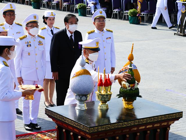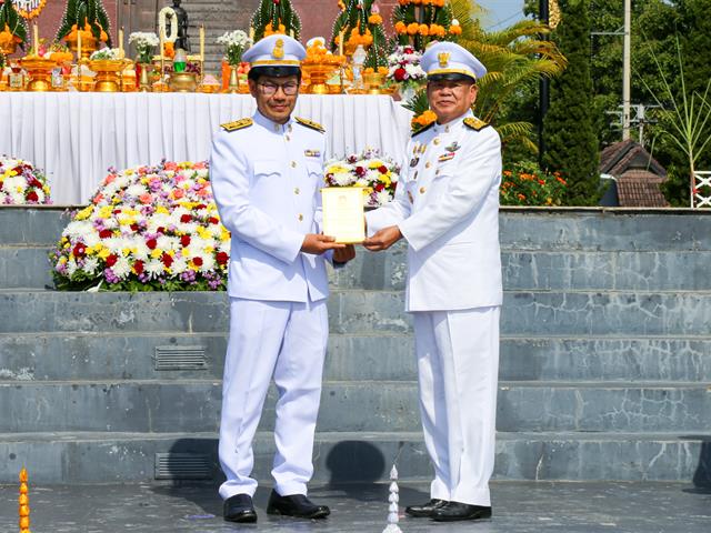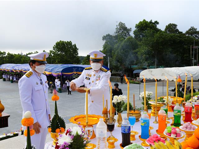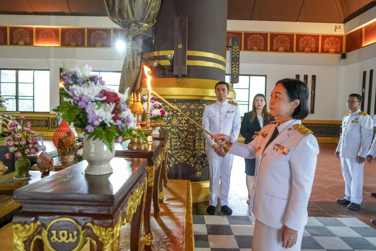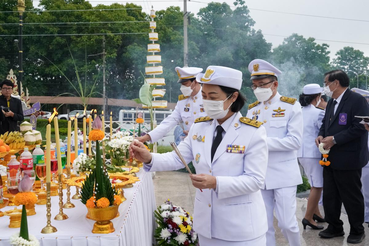 เวลา 07.29 น. ศาสตราจารย์พิเศษ อรรถพล ใหญ่สว่าง นายกสภามหาวิทยาลัยพะเยา ถวายพวงมาลัย จุดธูปเทียนเครื่องทองน้อยและธูปเทียนเครื่องบวงสรวงดวงพระวิญญาณสมเด็จพระนเรศวรมหาราช เปิดธูปเทียนแพรกรวยดอกจากนั้นกรรมการสภา และคณะผู้บริหาร ปักธูป เครื่องบวงทรวง พร้อมร่วมวางพานพุ่มเงิน – พุ่มทองตามลำดับ และกล่าวถวายราชสดุดี สมเด็จพระนเรศวรมหาราช เพื่อรำลึกถึงพระมหากรุณาธิคุณ และแสดงความจงรักภักดีต่อสถาบันพระมหากษัตริย์