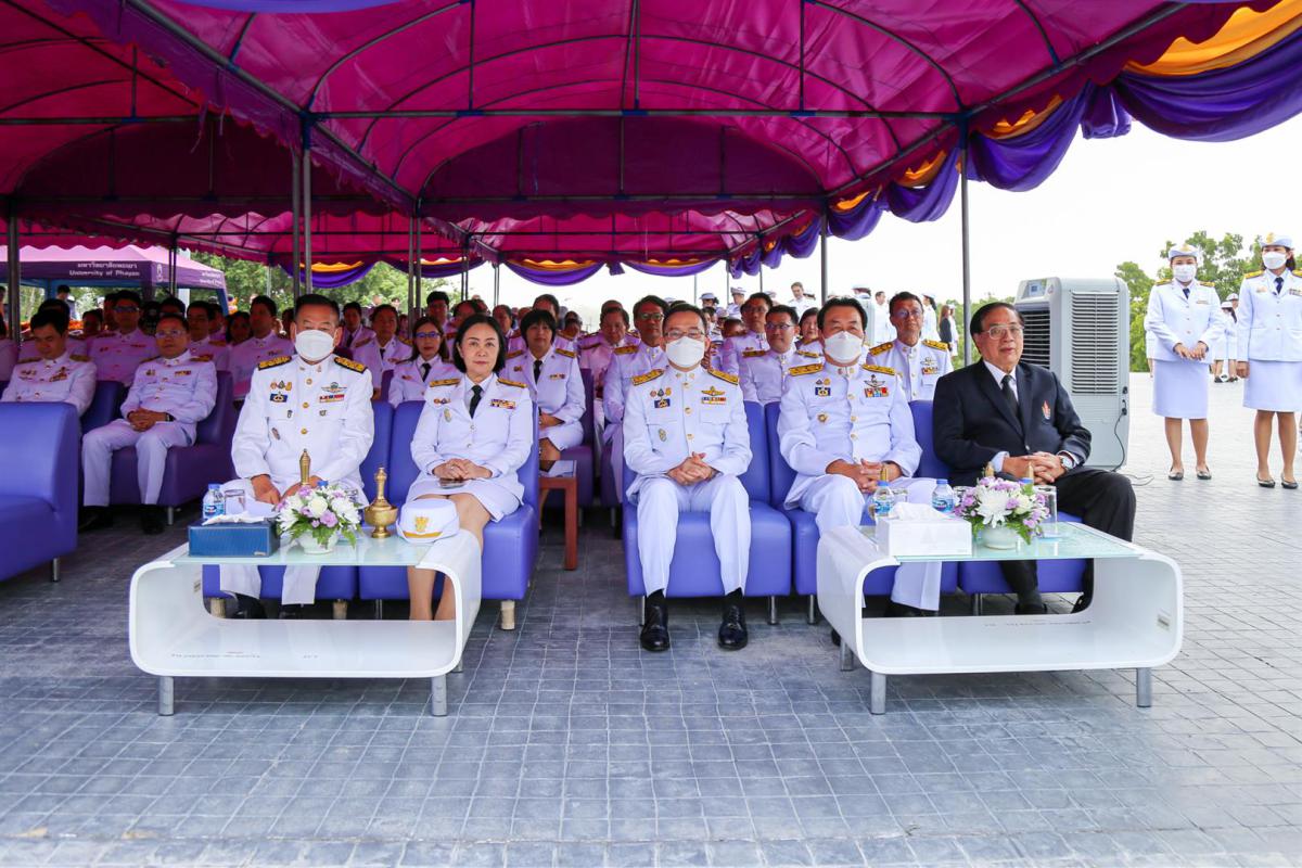 วันจันทร์ที่ 17 กรกฎาคม 2566 ศาสตราจารย์พิเศษ อรรถพล ใหญ่สว่าง นายกสภามหาวิทยาลัยพะเยา พร้อมด้วย รองศาสตราจารย์ ดร.สุภกร พงศบางโพธิ์ อธิการบดีมหาวิทยาลัยพะเยา นำทีมคณะกรรมการสภา และคณะผู้บริหาร บุคลากร นิสิต มหาวิทยาลัยพะเยา เข้าร่วมพิธีวันสถาปนามหาวิทยาลัยพะเยาครบรอบ 13 ปี ซึ่งตรงกับวันที่ 17 กรกฎาคม ของทุกปี โดยปีนี้ได้รับเกียรติจากว่าที่ร้อยตรี ณรงค์ โรจนโสทร ผู้ว่าราชการจังหวัดพะเยา พร้อมด้วยหน่วยงานราชการและเอกชนในจังหวัดพะเยา เข้าร่วมพิธีวางพานพุ่ม ณ ลานพระบรมราชานุสาวรีย์ สมเด็จพระนเรศวรมหาราช หน้ามหาวิทยาลัยพะเยา