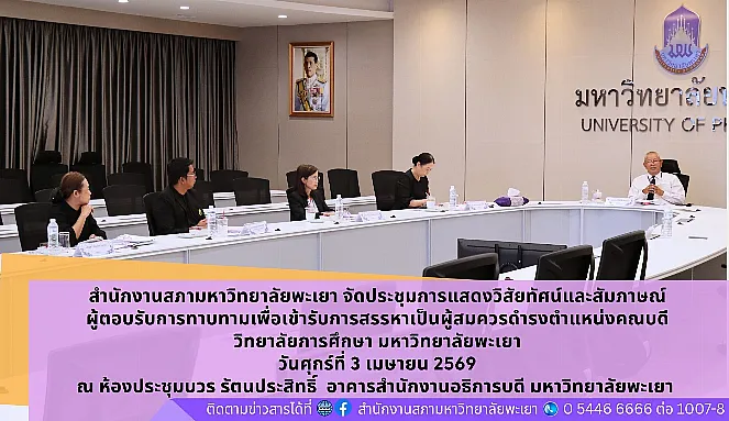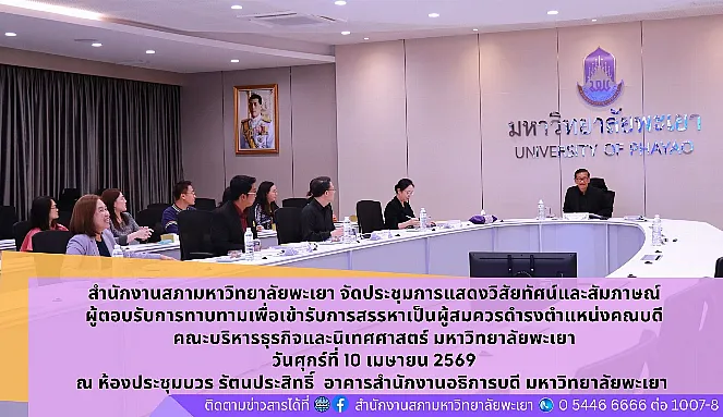 การแสดงวิสัยทัศน์และสัมภาษณ์ผู้ตอบรับการทาบทามเพื่อเข้ารับการสรรหาเป็นผู้สมควรดำรงตำแหน่งคณบดีคณะบริหารธุรกิจและนิเทศศาสตร์ มหาวิทยาลัยพะเยา